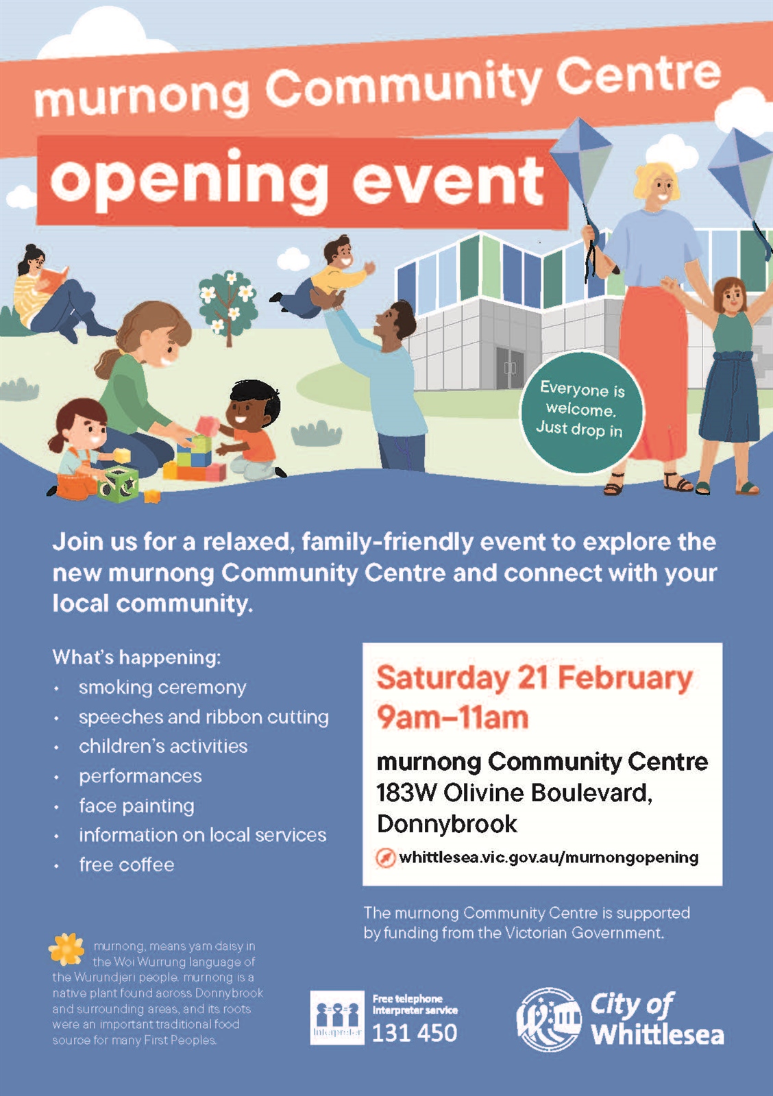 Our local community is warmly invited to celebrate the opening of the Murnong Community Centre with a relaxed, family friendly morning of connection and fun.